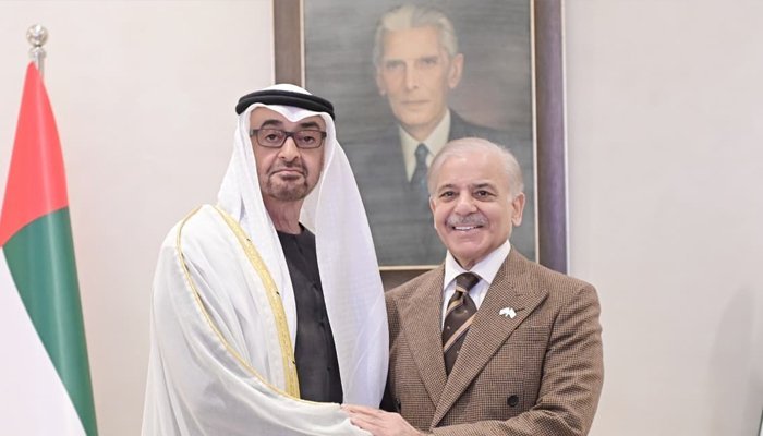 یو اے ای کے صدر محمد بن زاید النہیان کی وزیر اعظم شہباز شریف سے ملاقات، دونوں ممالک کے درمیان تعاون بڑھانے پر تبادلہ خیال